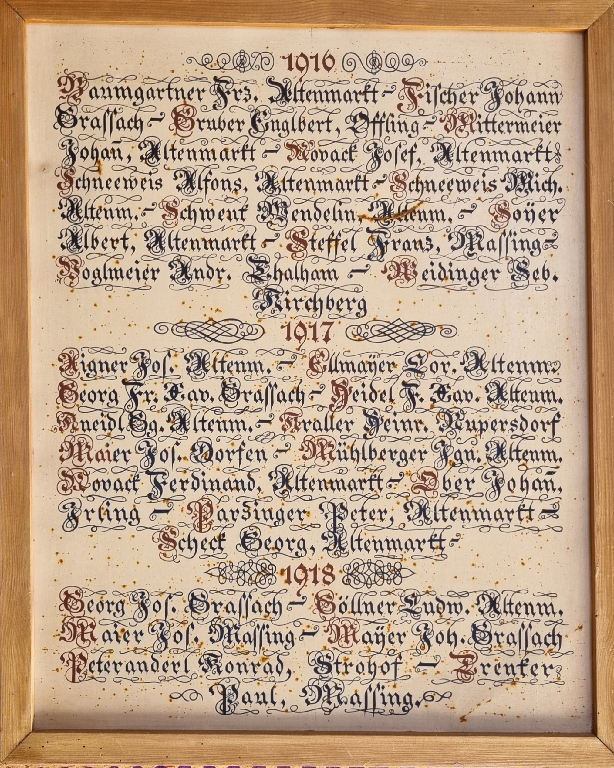 Vor der Kapelle befinden sich zwei Stelen mit den Namen der Gefallenen aus dem Deutsch-Französischen Krieg 1870/71.
