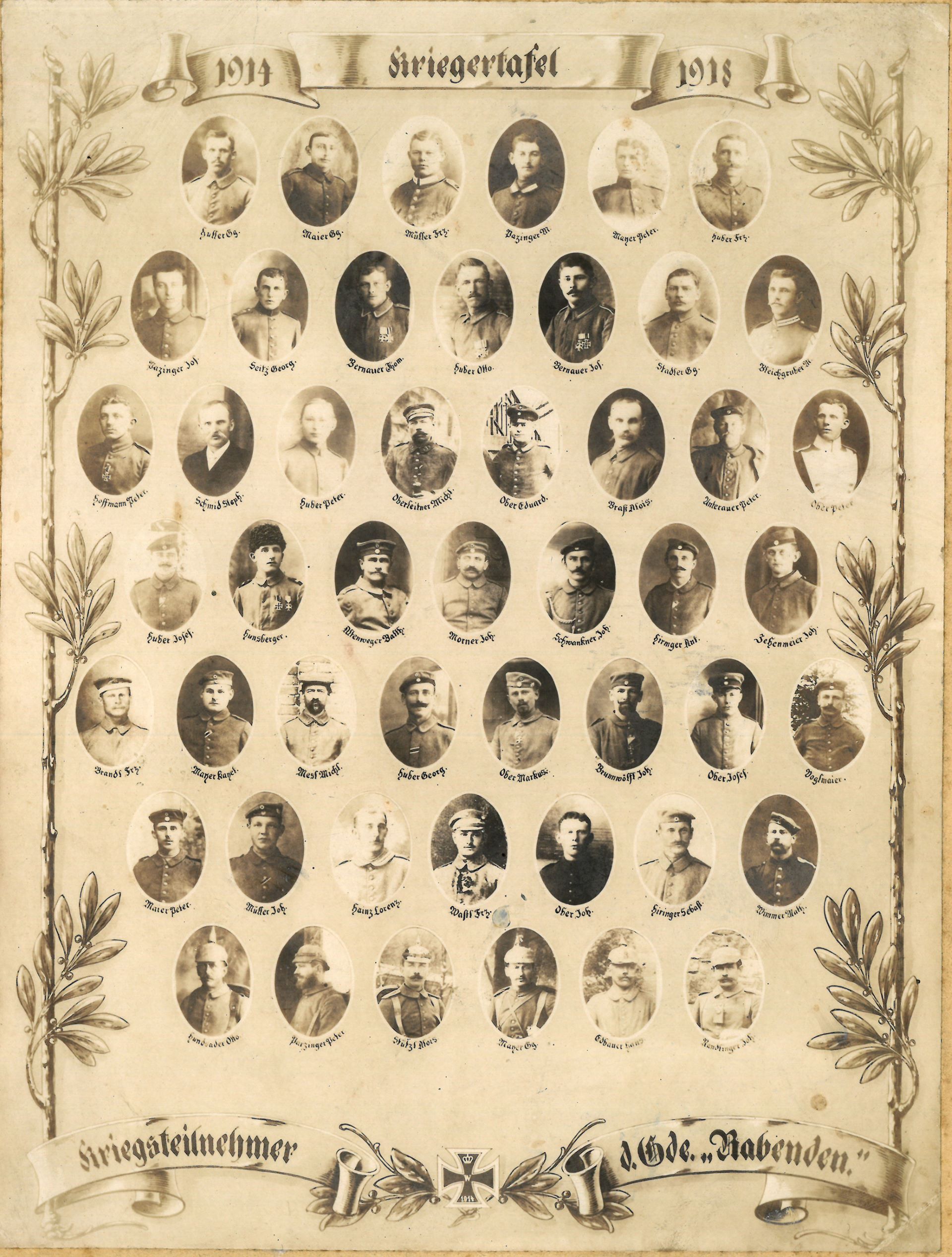 Ehrentafel 1914-1918 Rabenden Kriegsteilnehmer